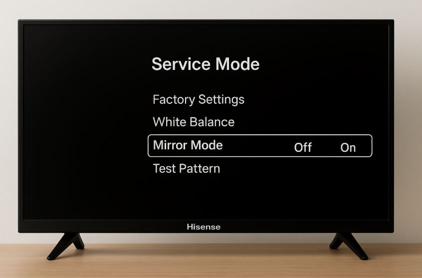 Người dùng vô tình bật chế độ kỹ thuật (Service Mode): Một số dòng tivi Hisense có tính năng “Mirror Mode” – nếu bật nhầm sẽ khiến hình bị lộn ngược.